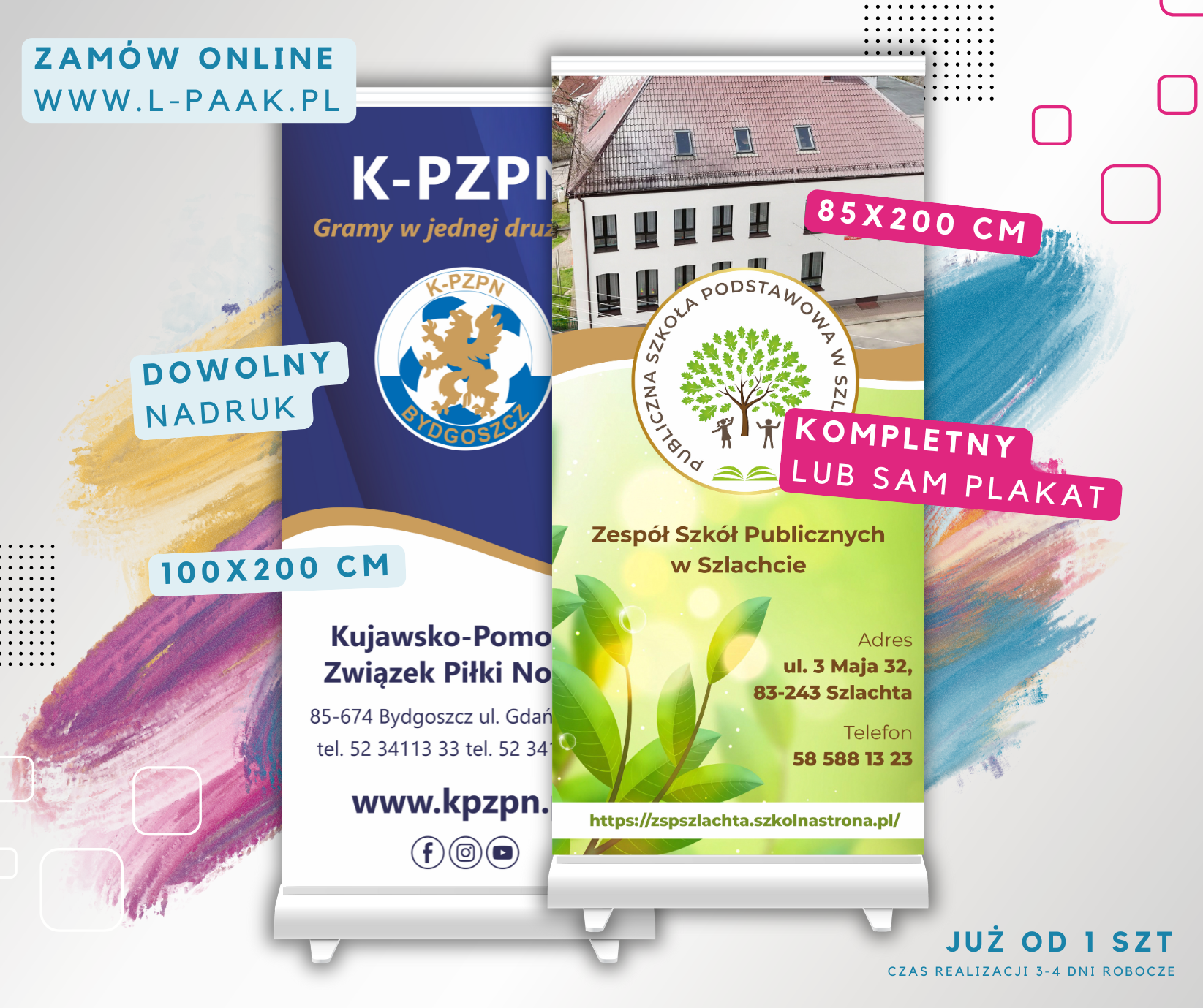 Roll-up to jeden z najbardziej wszechstronnych i stylowych nośników reklamy, idealny do prezentacji na targach, konferencjach, wydarzeniach firmowych oraz w miejscach sprzedaży. Dzięki poręcznej kasecie z automatycznym mechanizmem zwijania, grafika jest skutecznie chroniona w trakcie transportu i przechowywania. Instalacja jest błyskawiczna i bezproblemowa – wystarczy rozwinąć wydruk i zamocować go na stelażu.