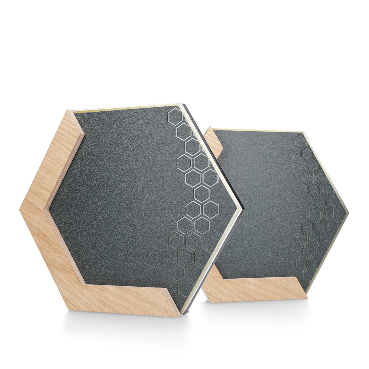 Połączenie matowej czerni, subtelnego wzoru plastra miodu oraz naturalnego drewna tworzy wyjątkowy kontrast – elegancki, a zarazem pełen energii i symboliki. To idealna nagroda dla liderów, naukowców, twórców innowacji oraz osób, które wyznaczają nowe kierunki rozwoju.